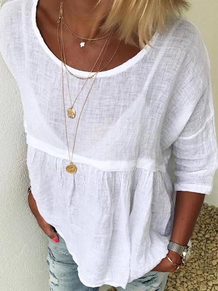 Temperament solid color cotton and linen shirt loose shirt top