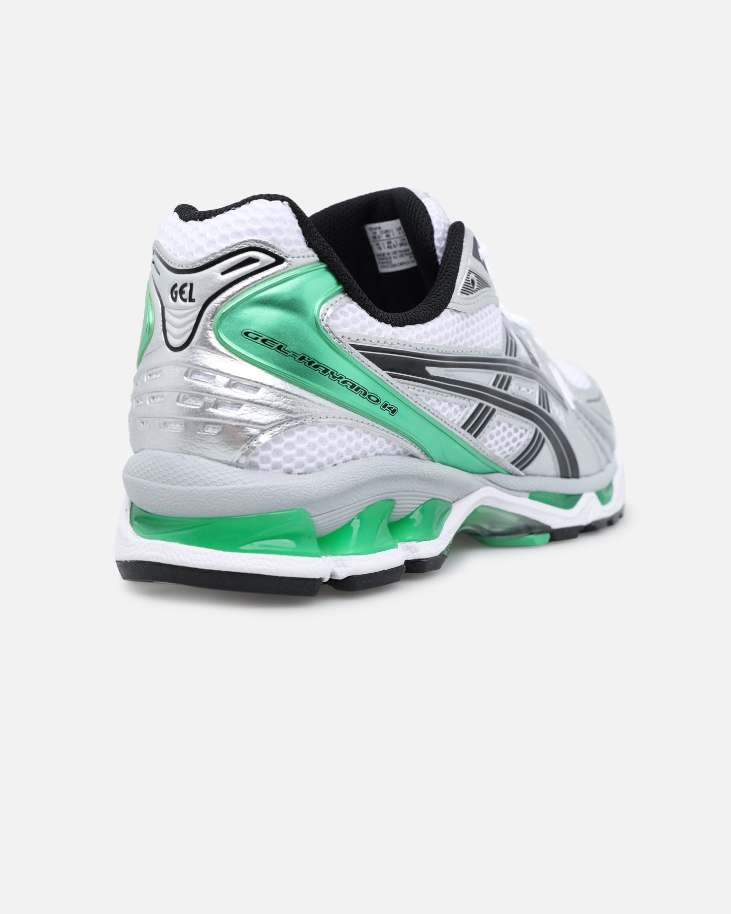 Conveying a new perception to the retro running shape, the GEL-KAYANO 14 running shoe resurfaces with its late 2000s aesthetic as a nod to our storied GEL-KAYANO series. Reinterpreting the shoe's performance capabilities with updated materials and componentry, this version became the first iteration in the sneaker's lineage to be designed by someone other than Toshikazu Kayano. This torch's passing would also reignite the franchise's signature values while making advancements in its performance evolution. Mirroring the original midsole tooling with GEL™ technology cushioning, this shoe also improves the fit of the upper while retaining its layered leather and mesh construction from 2008. Secure yours today at Culture Kings.- Mesh upper- GEL™ technology cushioning- TRUSSTIC system technology- Low-cut silhouette- Padded collar- Solution dye sockliner- Lace up closure- Original inspired tooling- 2000s design language- Colour: White/Green- Style: 1201A019-110