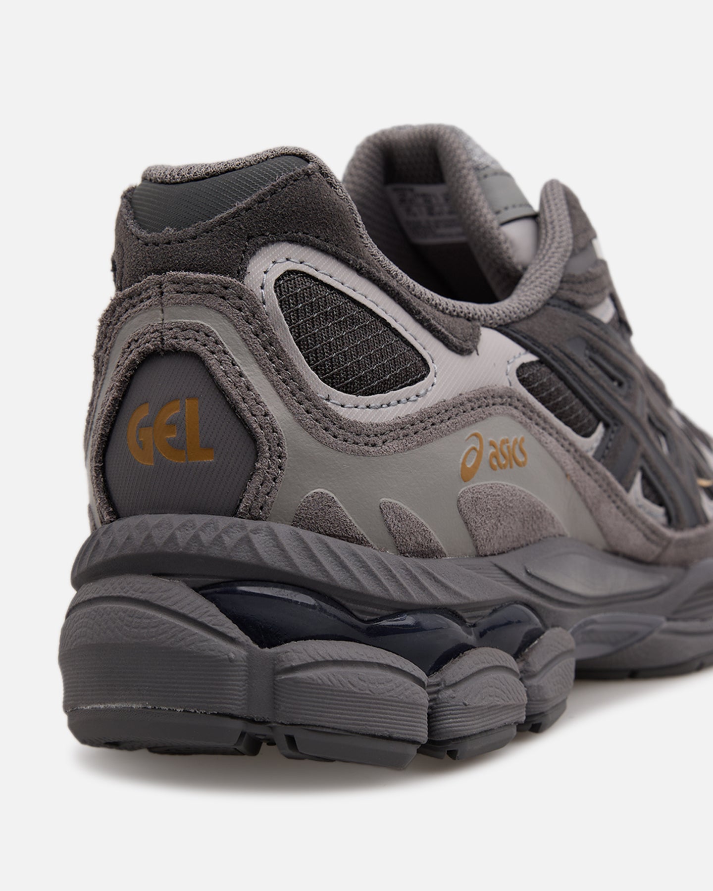 The GEL-NYC™ sneaker sources design influences from various archived running shoes that released in the early 2000s. Its upper construction references the GT-2050™ and GT-2060™ running shoes. Key details from these silhouettes are configured onto the shoe's ASICS Stripes, heel counter, and eyelet structure. The tooling contrasts the upper's retro influences by using the GEL-CUMULUS™ 16 shoe's tooling system. Through a combination of lightweight foams and GEL™ technology inserts, this midsole formation helps create advanced underfoot comfort. Cop yours today at Culture Kings.- Mesh upper- Rearfoot and forefoot GEL™ technology- GEL-CUMULUS™ 16 tooling- Low-cut silhouette- Padded collar- Lace-up closure- Upper is inspired by the GT-2050™ and GT-2060™ shoes- Colour: Obsidian Grey- Style: 1203A739-021