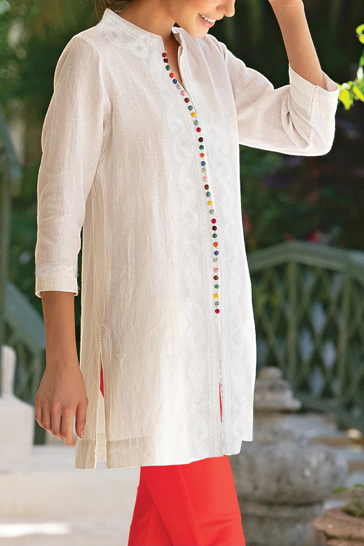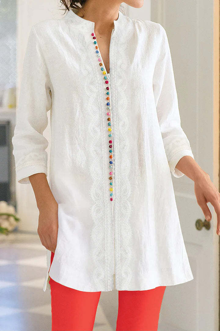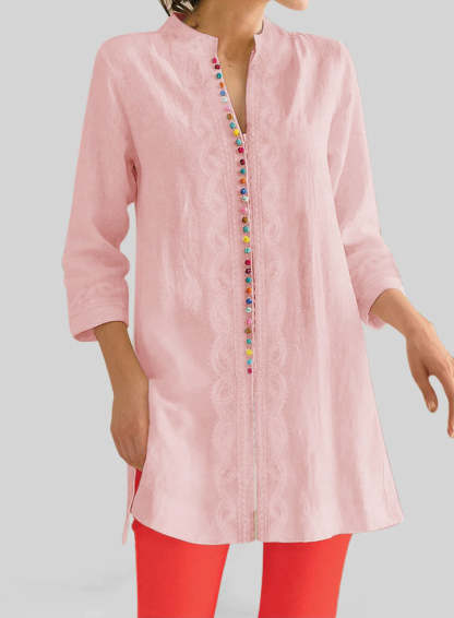 Long Sleeve Colorful Button Up Lace Linen Blouses
