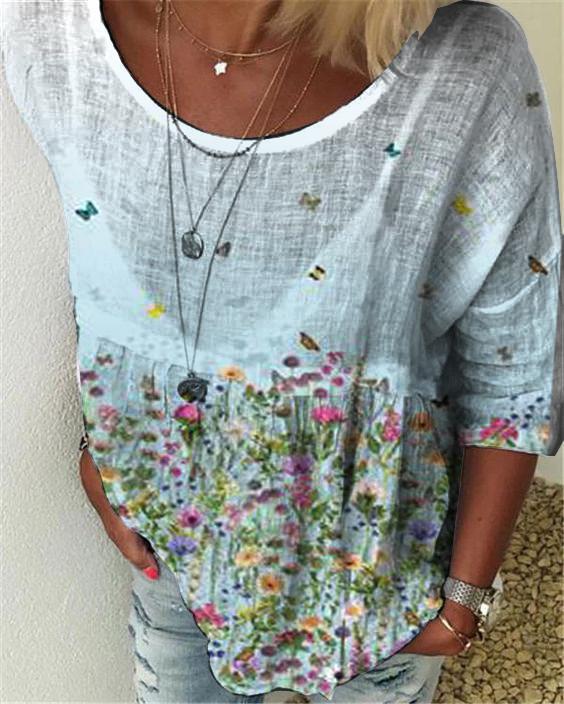 Retro flower print loose casual top